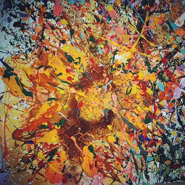Girasole, tecnica mista su faesite, dett., 2014