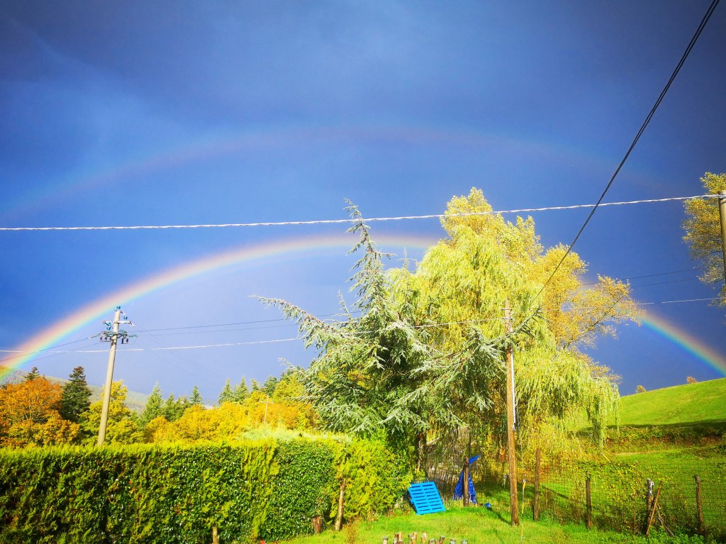 Il piccolo arcobaleno iniziò a piangere impaurito e piccole gocce colorate cadevano sui volti esterrefatti dei bimbi. Sussultando per i singhiozzi, tra un sobbalzo e l’altro iniziò a dondolare. Non era mai accaduto di vedere un arcobaleno dondolare. Era uno spettacolo magnifico! Il piccolo arco iniziò a divertirsi, a ridere e a dondolare sempre più forte, come fanno i bambini quando vanno in altalena. Dondola dondola, improvvisamente si ritrovò capovolto di nuovo e dal Monte Penna eccolo sul monte Labbro, ma lì inciampò di nuovo tornando concavo, o viceversa? Ma come si stava divertendo!